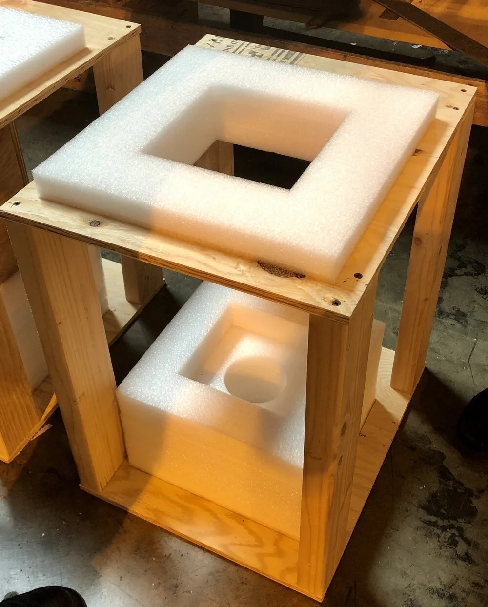 Polyethylene Foam and Wood assemblyPolyethylene foam glued to a complex wood assembly.